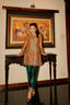 A midnight blue long, front-open silhouette adorned with Resham embroidery in shades of mustard, pink, blue, and beige. This pure silk shirt beautifully showcases both flora and fauna motifs. It is complemented by crushed pants and a pure organza dupatta with striking contrasting finishes.